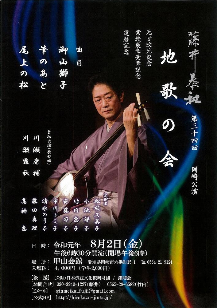 | 詳細他 | 川瀬庸輔先生は「御山獅子」、「尾上の松」に出演 |